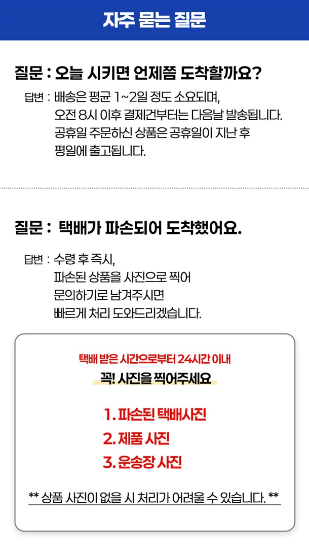 · 배송비 : 4,000원(1개 마다 기본배송비 반복 부과)