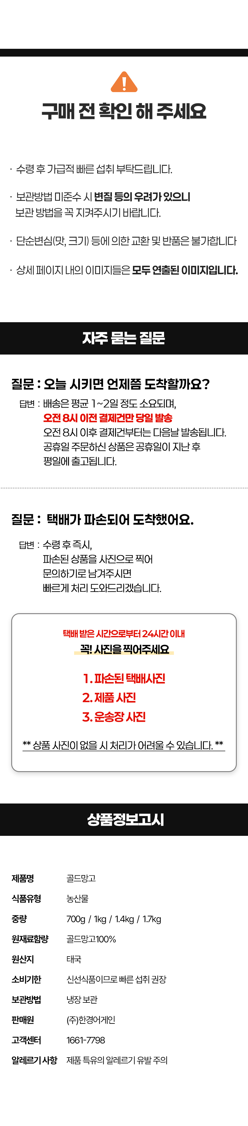 진한 향과 달콤한 과즙이 풍부한 맛 골드망고 700g 외