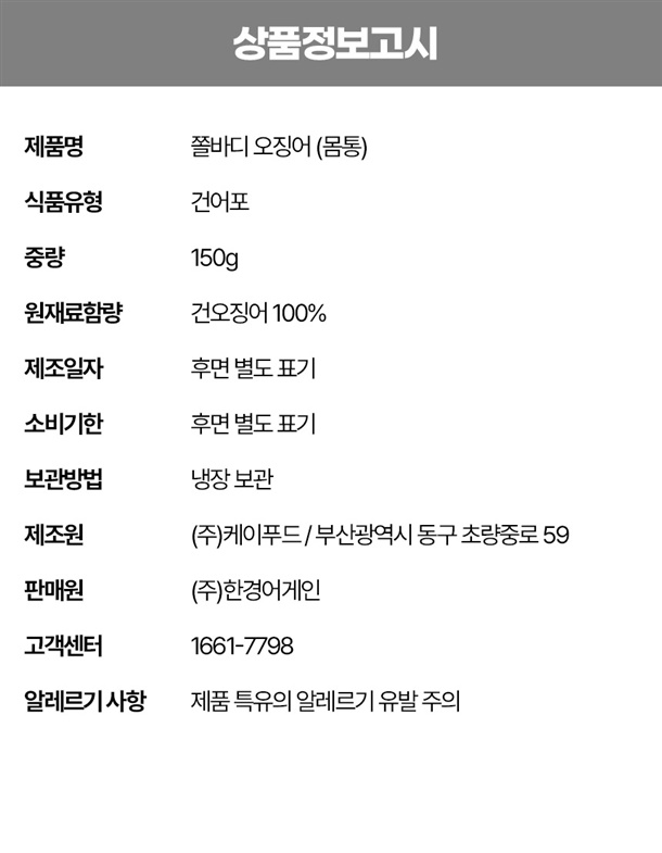 몸통 오징어채 쫄바디 오징어