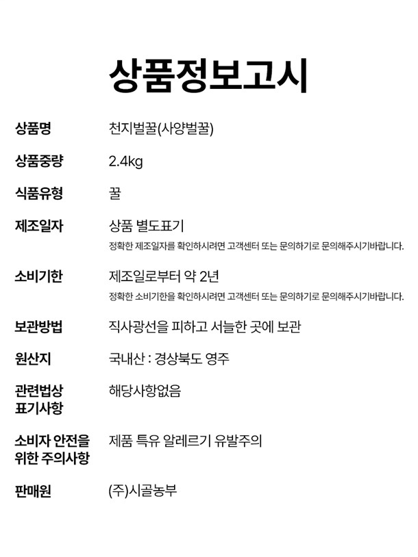 경북 영주 건강한 천지벌꿀 2.4kg