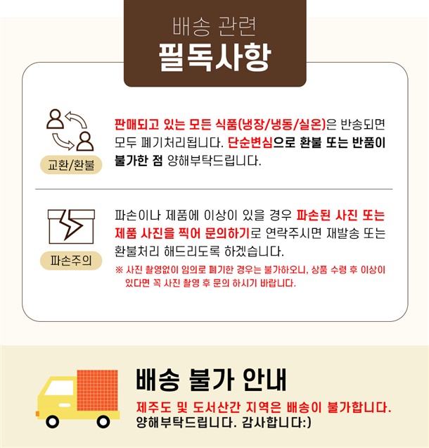 · 배송비 : 3,500원(4개 마다 기본배송비 반복 부과)