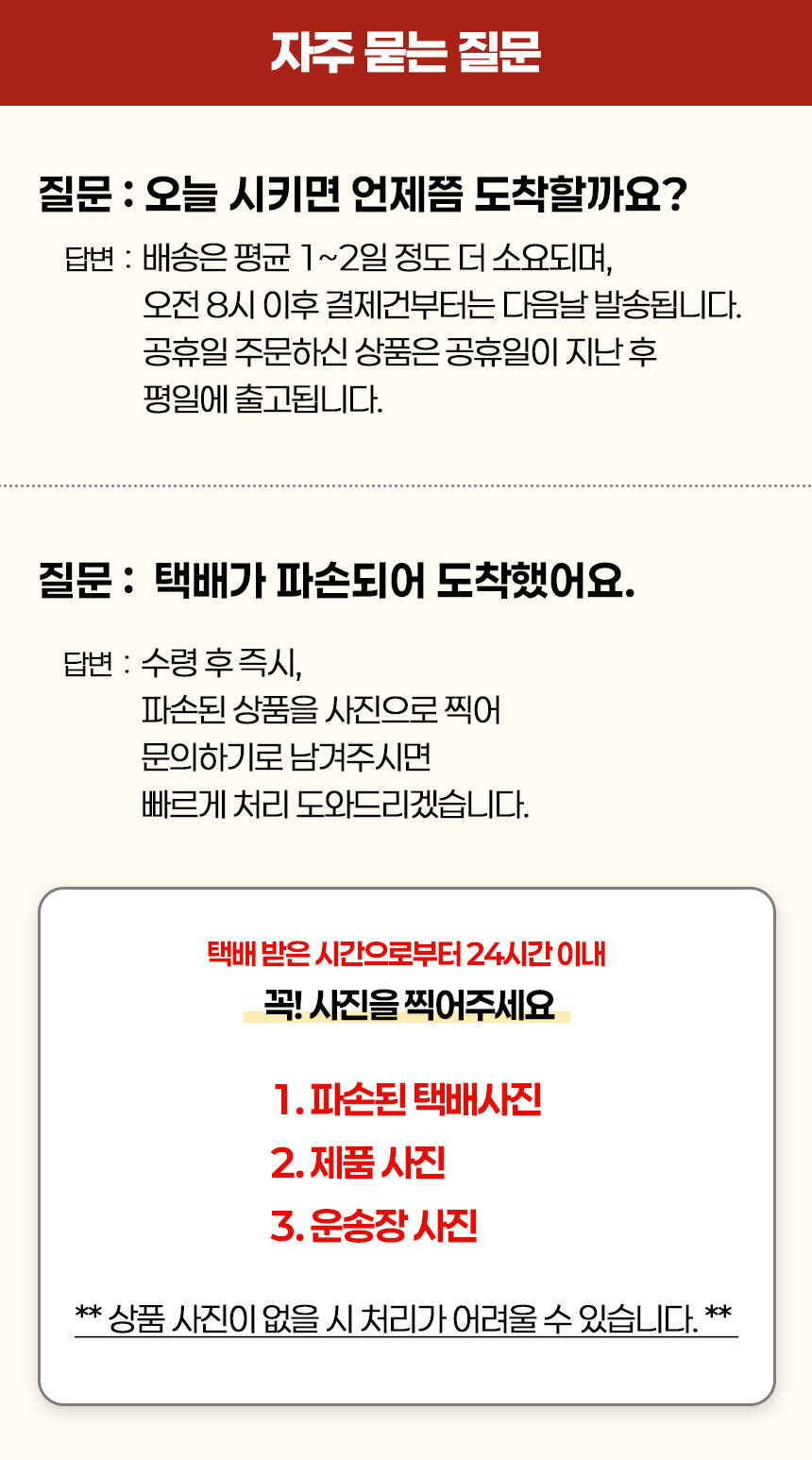 · 배송비 : 4,000원(12개 마다 기본배송비 반복 부과)