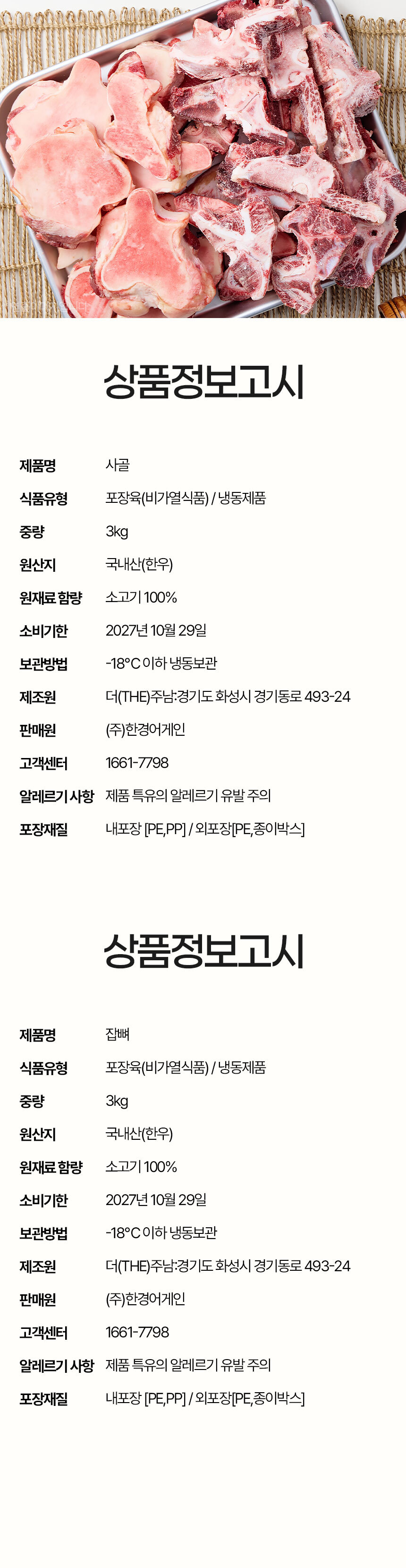 100% 국내산 횡성한우사골 보신세트 1 (사골/잡뼈)