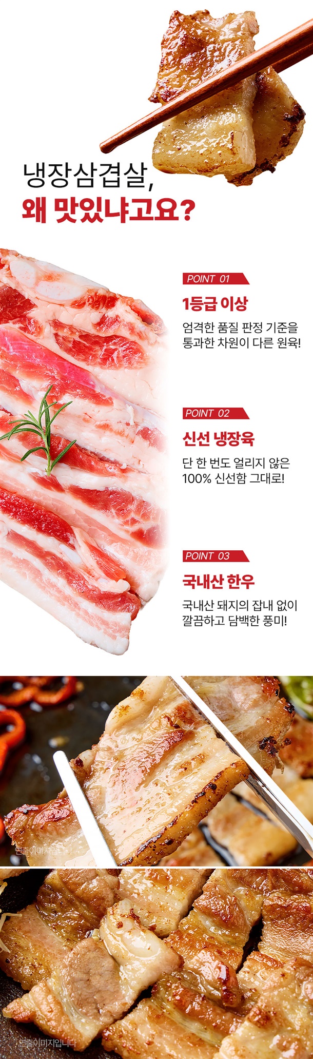 쫀득한 육질에 고소한 풍미! 국내산 냉장 삼겹살