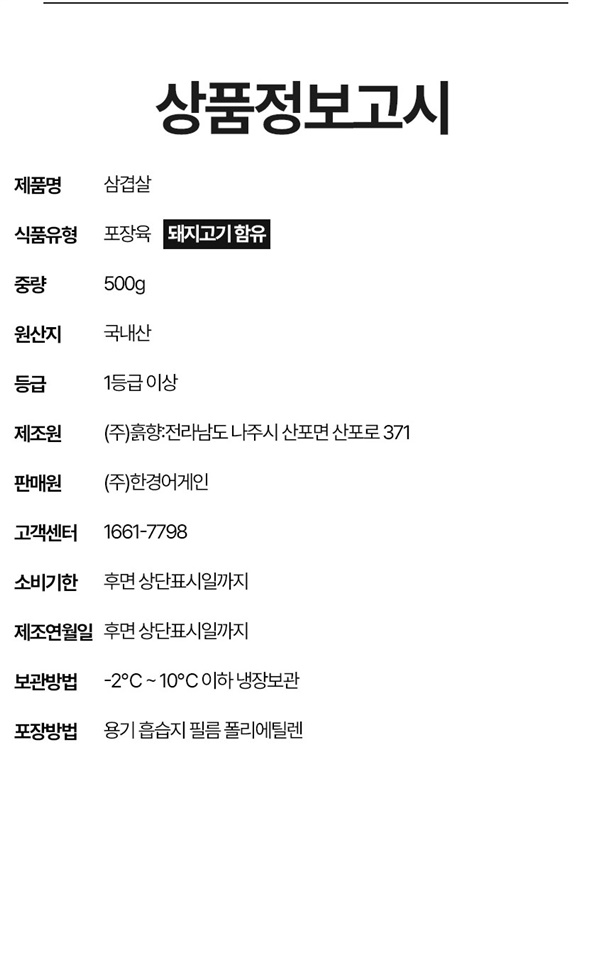 쫄깃하고 고소한 국내산 냉장 삼겹살 500g