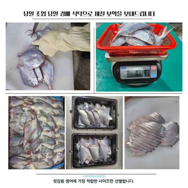 오늘 경매에서 바로 직송되는 신선한 프리미엄 횟감용 병어