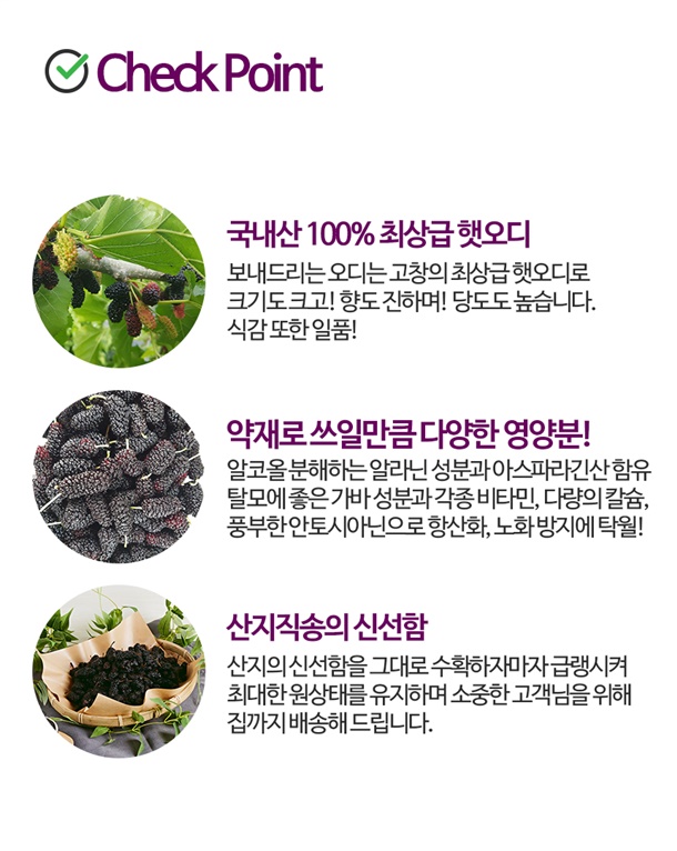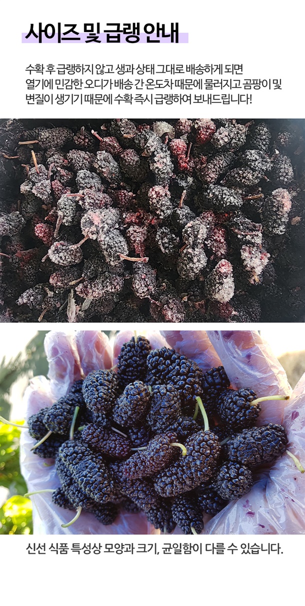 물 맑고 공기 좋은~ 고창에서 재배한 국내산 100% 최상급 오디