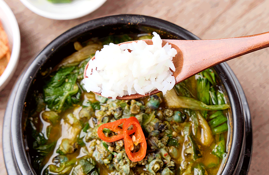 깊고 진한 육수에 탱글탱글한 올갱이해장국