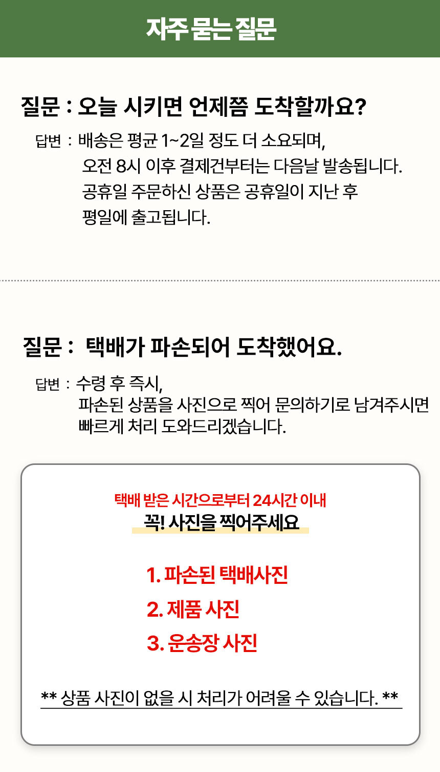 · 배송비 : 4,000원(12개 마다 기본배송비 반복 부과)