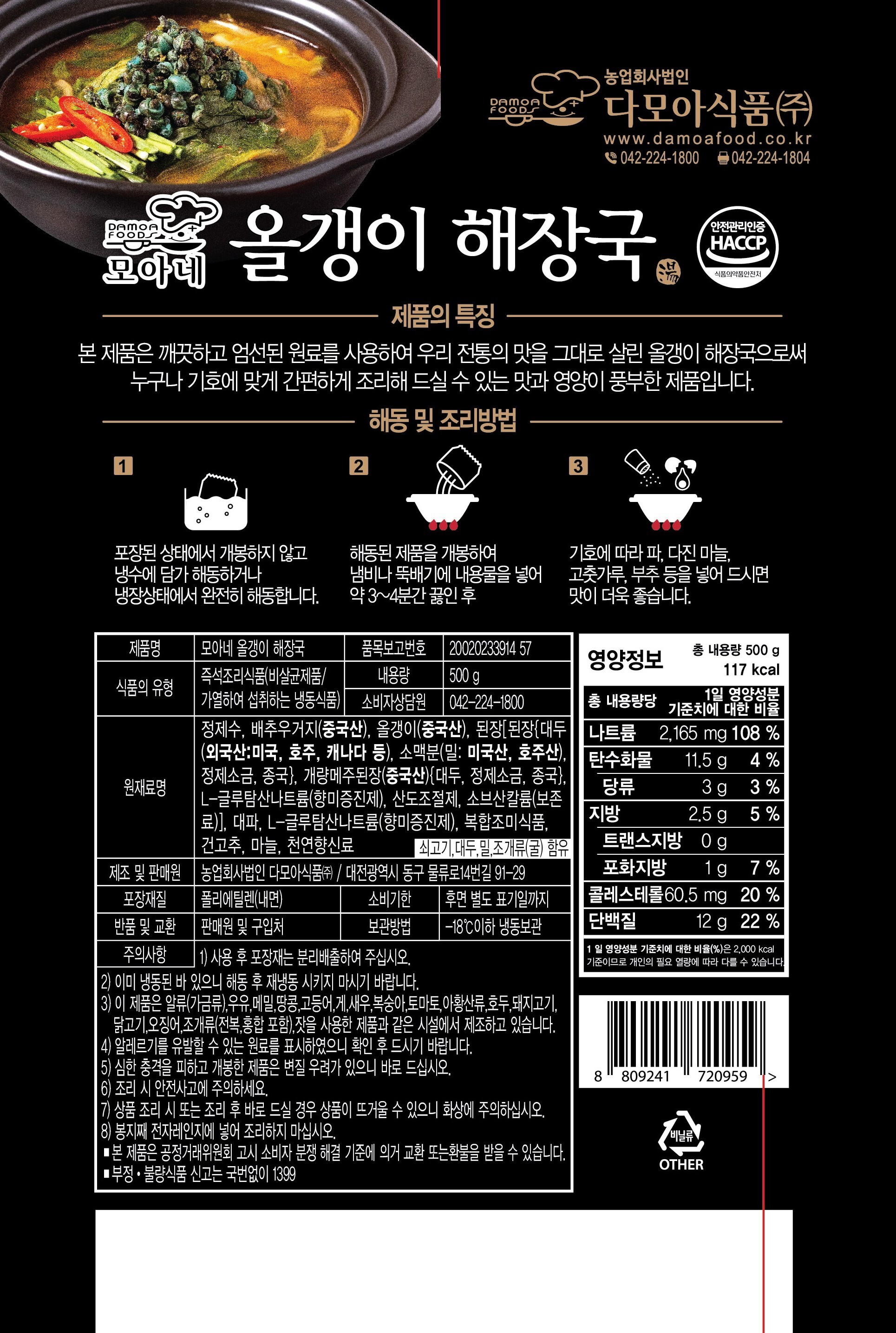 구수하고 탱글한 올갱이해장국 500g