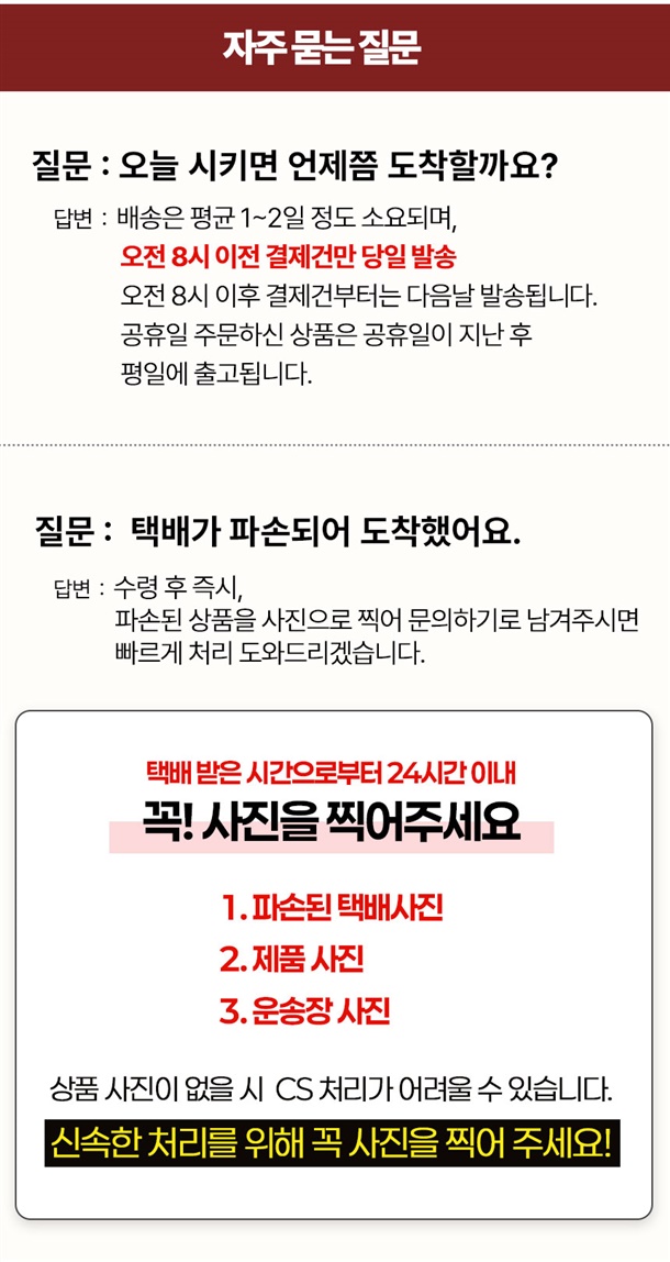 · 배송비 : 4,000원(1개 마다 기본배송비 반복 부과)