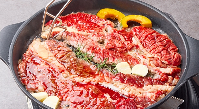 갈비의 식감과 삼겹살의 고소함을 동시에 즐기는 양념 박포 갈비